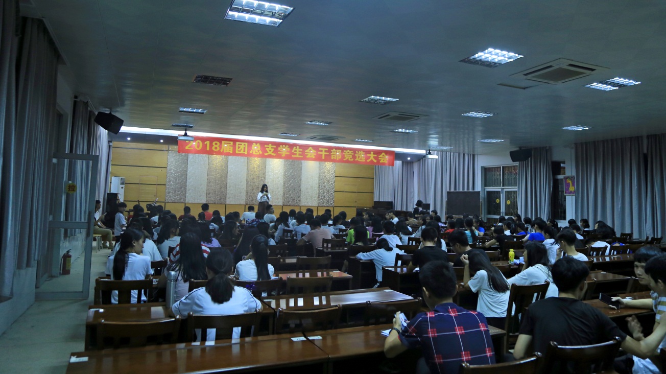 2018年 9月25日晚上,湛江开放大学主校区团总支学生会在礼堂举办2018届学生干部竞选大会。