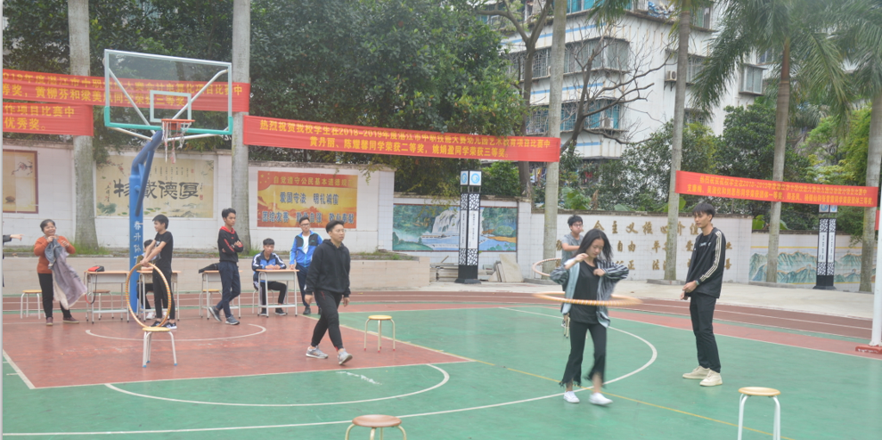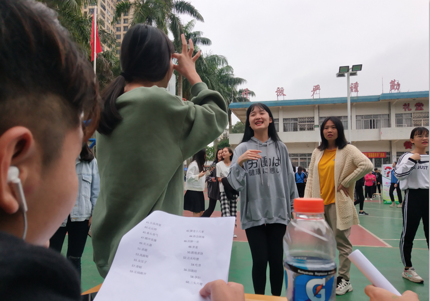 活动项目一共设置了六项,分别是你问我答(招生宣传知识、扫黑除恶、禁毒、环保小知识)、 你划我猜、双人夹篮球竞走、转呼啦圈走"S"道、指压板跳绳、拧魔方。现在我们到的是你问我答的活动现场照: