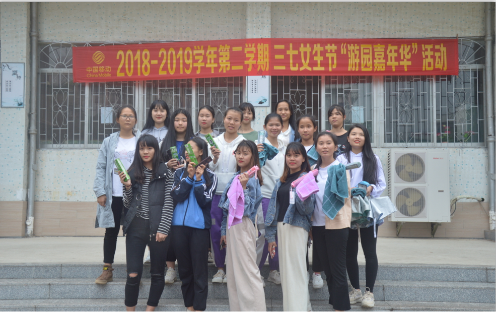 2019年3月7日下午3时,我校中专部在主校区篮球场举行三七女生节"游园嘉年华"活动,为响应关爱女性、尊重女性的号召,让女生树立自尊自爱、自立自强的性格,展示女生风采,凸显女生美丽、大方的积极健康形象,增强广大女生的自信心,营造尊重女性良好的校园风气。