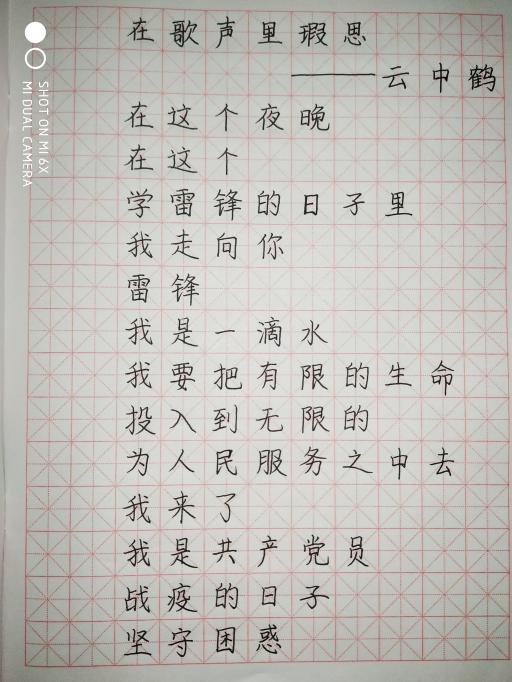 "继承传统文化,弘扬雷锋精神"硬笔书法比赛在主校区各部门领导的指导下,主校区团总支精心组织全校学生于2020年3月13日举行,截止初赛报名时间共百余名学生参与此次比赛。比赛分初赛和决赛两部分,初赛为线上投稿形式,专业老师对投稿者的作品进行筛选,待学生返校后,再举行现场书法决赛。