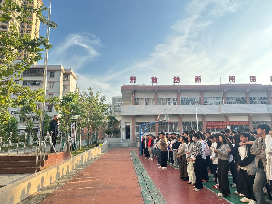 为切实提升学生安全防范意识,湛江开放大学于11月27日在主校区操场举办“筑牢法治防线,守护青春航向”法治进校园宣讲活动?;疃烧拷糯笱Ц毙3の忤鞒郑拷兄屑度嗣穹ㄔ盒倘ザ斗ü?、湛江市财政职业技术学校法治副校长林志伟主讲。林志伟法官以自身司法实践经历为切入点,对网络诈骗、校园欺凌、性侵等教育安全等问题进行了剖析,并针对青少年身心发展特点,选取贴近学生生活的典型案例,以案释法,详细讲解如何?;?..