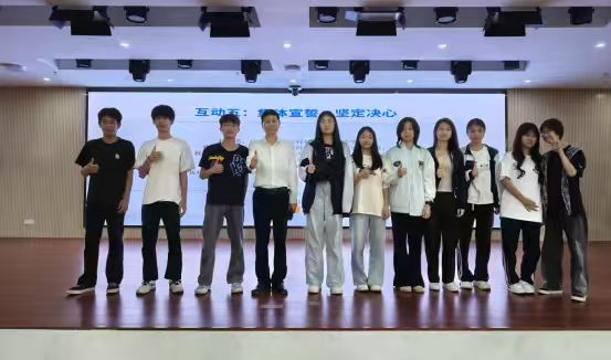 学生们在黄老师的带领下,庄严举起右拳,共同宣读心理健康誓词。
